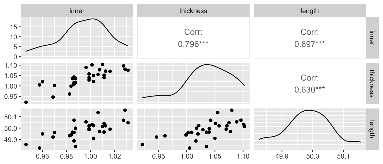 Au cours du processus de fabrication d’un tube en fibre de carbone spécifique, trois caractéristiques qualitatives corrélées sont mesurées : le diamètre intérieur, l’épaisseur et la longueur du tube.